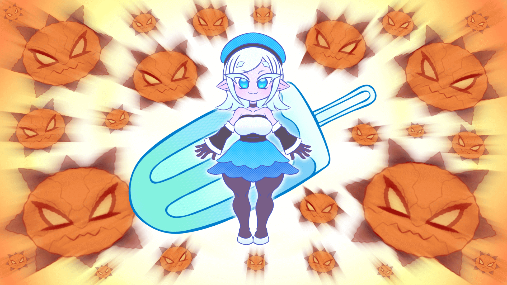 My Oc, Minty Popsicle. Smash out Sunrock monster with Giant Popsicle Sword. Actualy there no clear concepts what is this game about, just rushing make game faster before deadline, this is my first Game jam, here my result score.